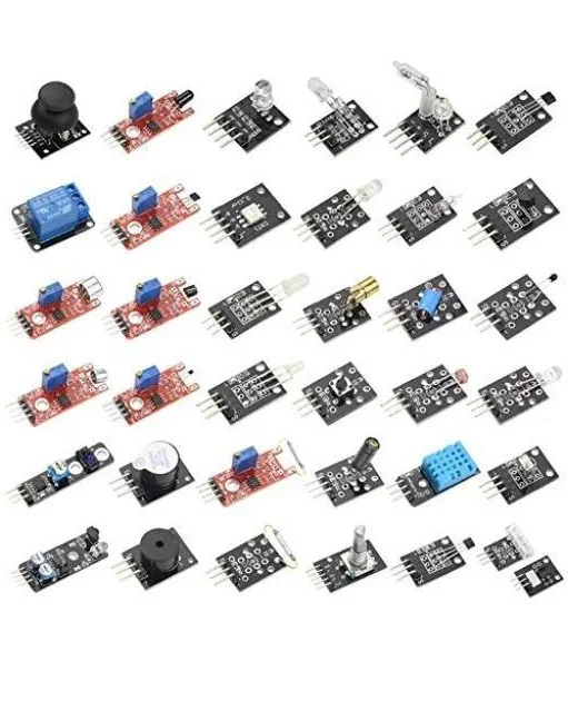 This 37 in 1 sensors kit is supplied with a variety of sensors that are compatible with Arduino Boards. This is the most complete performance starter Arduino sensor kit with all the essential Arduino sensors.